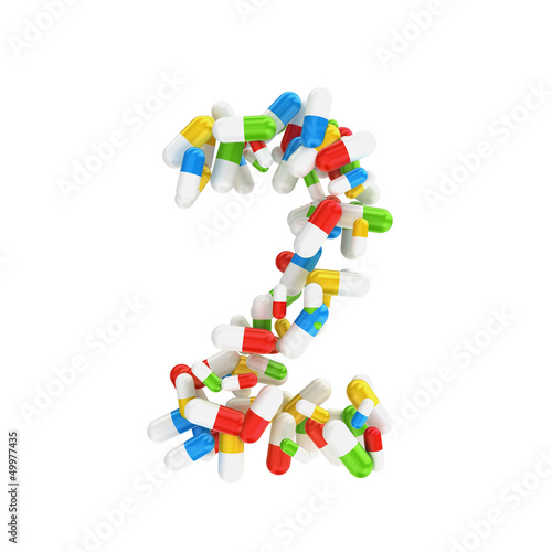 2 number made abstract with colorful pills