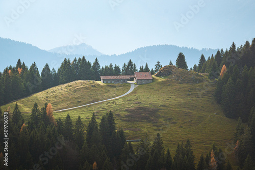 Val Seriana, its peaks, woods and autumnal landscape during an October afternoon, near the town of Clusone, Italy - October 2021