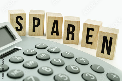 Finanzen und Sparen mit Rechner auf weissem Hintergrund
