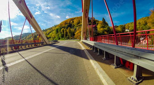 Viaduct across the railroad tracks. Rytro village in Beskids Mountains, Poland.