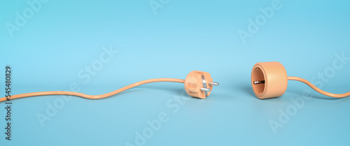 Blackout or disruption concept: Separated Plug and Socket lying on a blue background