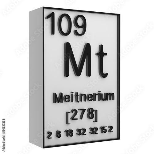 Meitnerium,Phosphorus on the periodic table of the elements on white blackground,history of chemical elements, represents the atomic number and symbol.,3d rendering