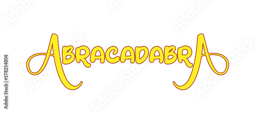 The isolated cute yellow text message Abracadabra (a word used when performing magical tricks), happy joyful font.