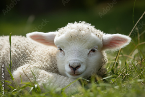 Portrait d'un bébé agneau dormant dans l'herbe » IA générative