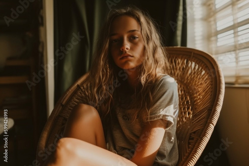 sad or depressed young girl, teenager girl looks tired or annoyed. Generative AI