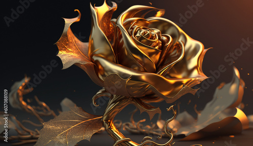 Złota róża - luksusowy kwiat, złote uczucie, złote gody - Golden rose - luxurious flower, golden feeling, golden mating - AI Generated