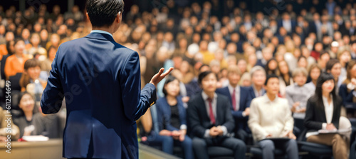 セミナーで登壇するアジア人ビジネスマン、生成AI