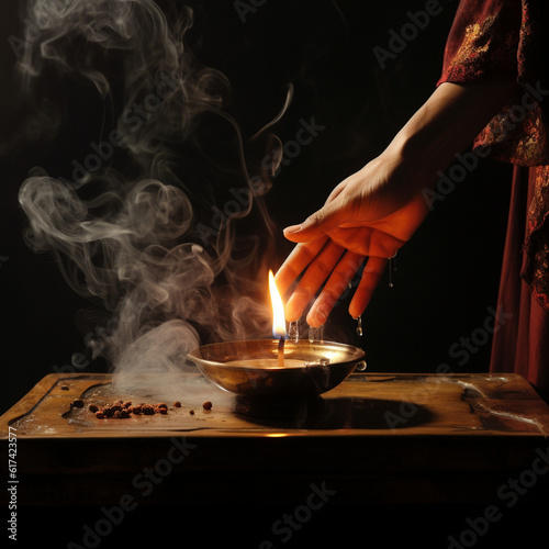 Lighting incense. Generative AI.