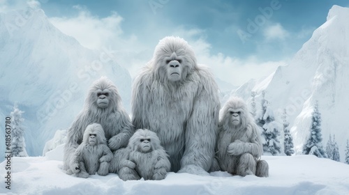 Yeti family in the snow. Generative AI