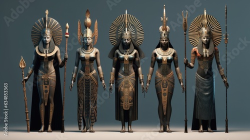 Egyptian deities such as Horus, Hathor, Seth, and Anubis