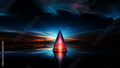 Futuristisches Gebäude einer Pyramide mit grandiosen bunten LED Lichter, ai generativ