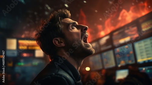 Bear Market Man Watching Crashing Falling Stock Shocked Panicking Anxious Unbelievable Panic Sell Stocks Crash