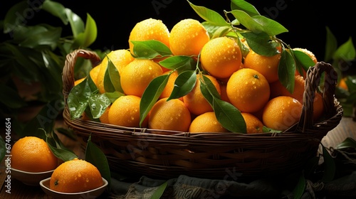 Basket Fresh Ripe Mandarins On Table, Bright Background, Background Hd