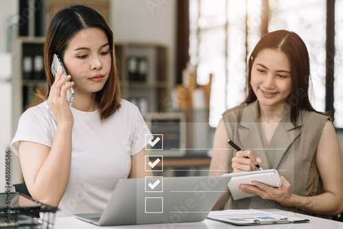 Businessman using tablet to do online checklist survey, doing assessment online survey answer test questions Digital form.