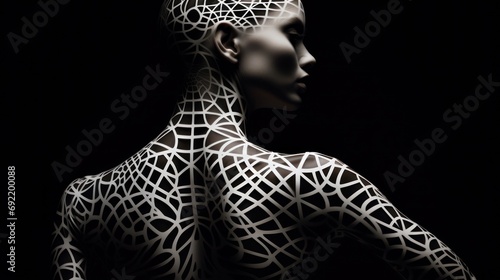 3D illustration of the designer's game of curved lines and light on the body and head of a female model, which with its distinct sensuality enhances the idea of the creator of the entire performance