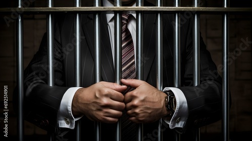 businessman holds prison bars, an official is arrested for money laundering