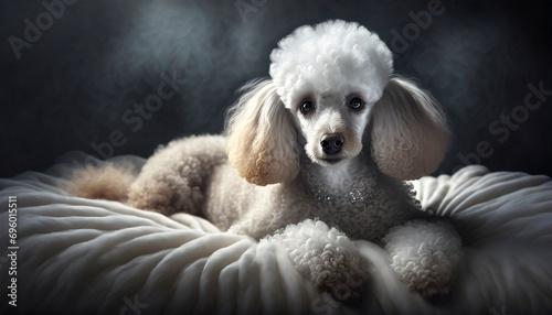 Pies pudel na ciemnym tle, abstrakcyjny obraz, dekoracja ścienna, generative ai