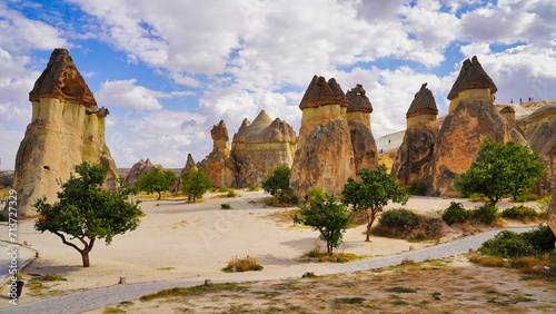 World Famous Fairy Chimneys of the Pasabag valley or Monk's valley with its unique mushroom like cones near Goreme, Cappadocia Region, Central Anatolia,Turkey.