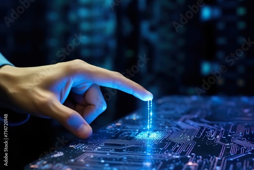 User's hand interacting with futuristic holographic technology
