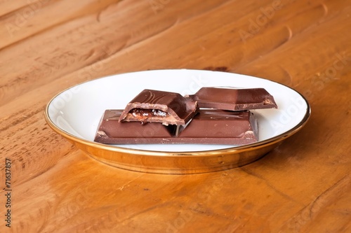 Czekolada na porcelanowym talerzyku