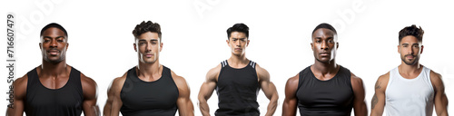 Set of Muscular Athletes: Asian, Black, and American Men - Bodybuilders, Sporty Guys, Fitness Instructors, Isolated on Transparent Background, PNG