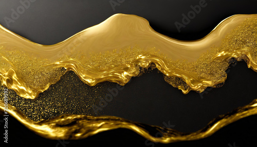 Złota gęsta ciecz na czarnym tle, dekoracja generative ai