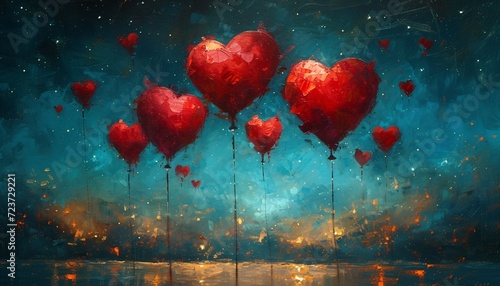 Heart-Shaped Balloons Soaring in the Sky Generative AI