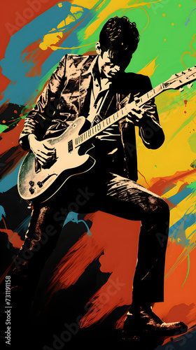 Rock n roll popart, pop art of guitarist, guitar illustration