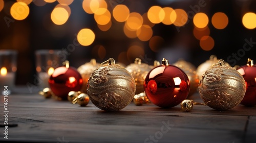 christmas tabletop background, gold christmas lights background in christmas tree, rustic scenes, rusticcore, smooth and shiny, red and brown