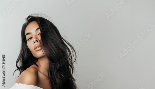 latina skincare hair model with copy space on the right for copy or design or logo, generative ai