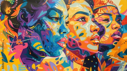A colorful mural depicts a diverse group of people coming together in unity, each person unique yet interconnected in this vibrant street art scene.