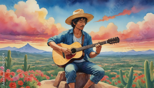 Argentine Gaucho Musician Performing in a Rugged Landscape