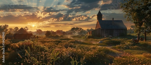 Flint tool era, animal husbandry integration, agriculture revolution milestone, twilight ambiance , ultra HD