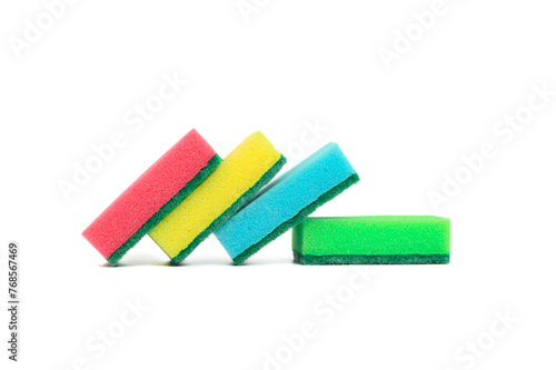 Kolorowe gąbki kuchenne do mycia naczyń na białym tle