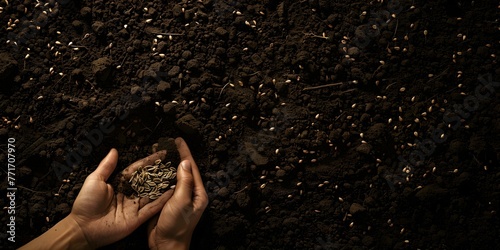 Person sowing seeds in fertile soil represents growth and abundance in the cycle of life. Concept Gardening, Growth, Abundance, Cycle of Life, Fertility