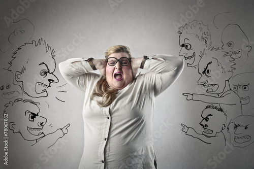 Men pointing at a chubby woman