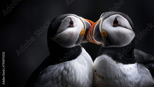 Couple de macareux moines Position rocher bec contre bec.