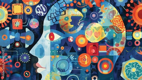 An illustration of a variety of exercises for the brain including memory games puzzles and critical thinking activities..