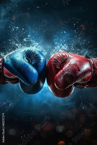 Prominent boxing gloves face off in wide poster with bold vs letters for intense versus battle