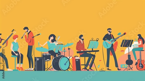 2D Flat illustation Activity Concept of a Music Jam Session, with Copy Space for Creative Collaboration