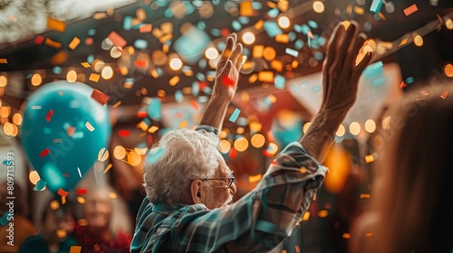 Close-up of an elderly person's retirement party, celebrating financial planning for financial freedom, investment growth, and retirement.