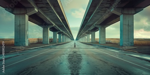 高架橋に挟まれた道路、地平線まで続く道