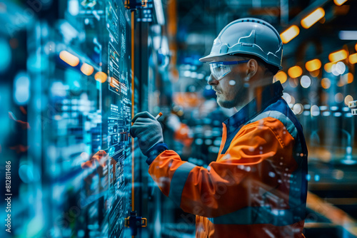 industrial worker in production, supervising workshop operations, coordinating tasks efficiently