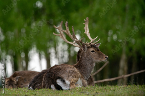 byk daniela zwyczajnego odpoczywa na trawie