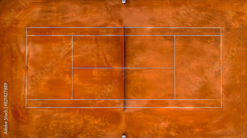 Un terrain de tennis en terre battue vue du ciel en drone.