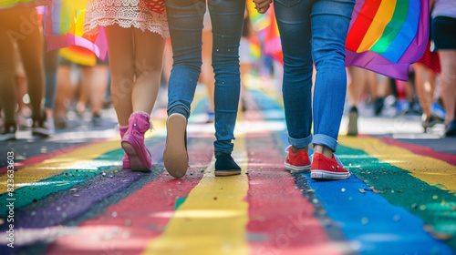A pride parade with people holding signs advocating for LGBTQ+ rights
