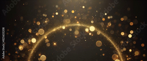 Partículas de brillo dorado fondo abstracto.Bokeh de partículas de brillo de luz dorada de Navidad sobre fondo negro marino. Concepto de vacaciones. Fondo abstracto con partículas de oro.