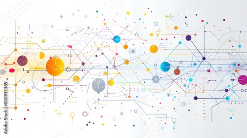 #71313797 Colorful Dots Connecting Technology and Social Media Networks on White Background
