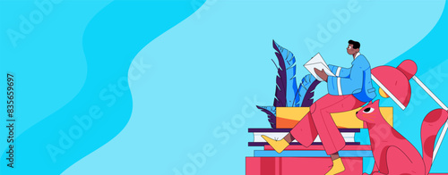 Character reading quietly vector concept operation hand drawn illustration