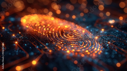 Biometric identity scan and password access via fingerprint. Cybersecurity and data protection concepts.